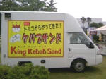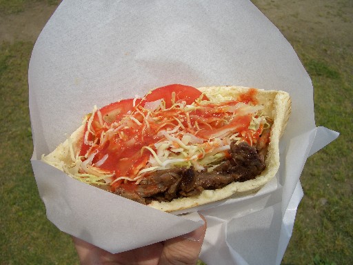 出来上がったケバブサンドをお店の人からニコニコで受け取り
